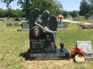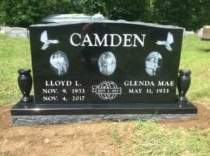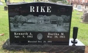Etching is a method of carving on the polished surface of dark granites usually a black granite. Etching can be done by laser or by hand. With laser etching you can have whatever you imagine engraved on the monument with finite detail and photos can be altered. If you cannot find a picture of what you want, we can always have our artist draw something for you. There is an additional fee for any etching and color can be added to an etching.